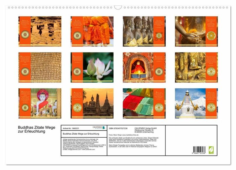 QUALITÄT - Hochwertiger Fotokalender mit 12 wunderschönen Motiven auf lichtbeständigem Bilderdruckpapier, robuste Spiralbindung mit Aufhängebügel.NACHHALTIG - deutliche Abfallreduzierung durch bedarfsgerechte Einzelstückfertigung, umweltfreundliches FSC-zertifiziertes Papier, Produktion in Deutschland, klimabewusste Logistik.PERFEKTES GESCHENK - Kalender für Freunde und Familie, für Kinder und Erwachsene, jung und alt, zu Weihnachten, Geburtstag oder zwischendurch.VIELFALT - Bildkalender in verschiedenen Formaten, z.B. DIN A5, DIN A4, DIN A3 sowie DIN A2. Ob Naturmotiv, Gemälde oder Fotos, ideal für ein persönliches Wohlfühlambiente.Buddhistische Weisheiten für alle Lebenslagen von Autor(in): Mario Weigt