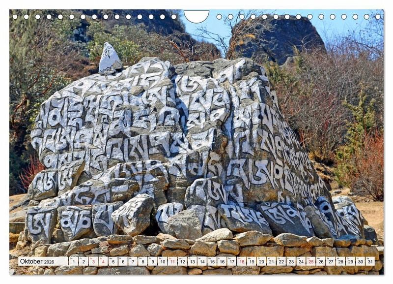 Oktober: Gebetsstein mit eingravierten buddhistischen Mantras im Khumbu