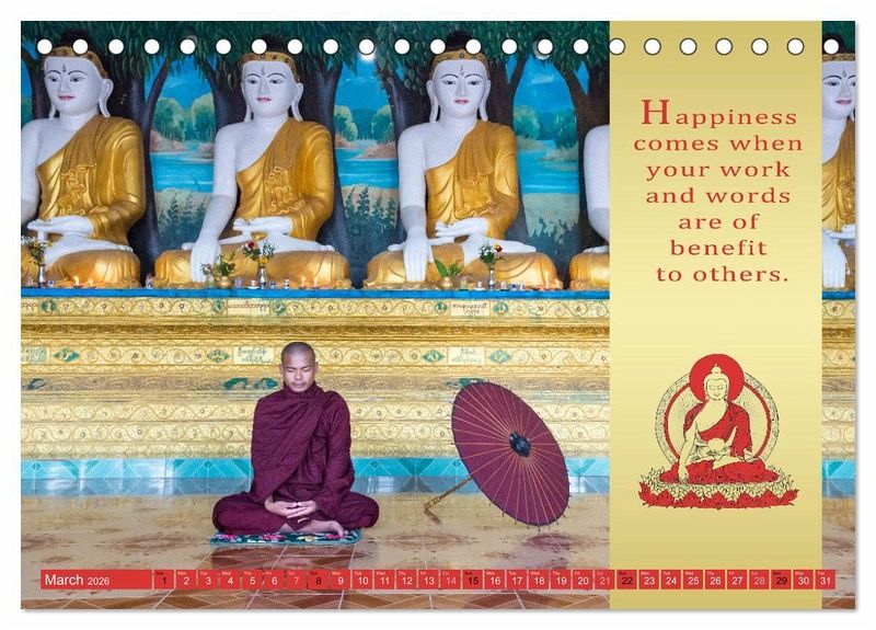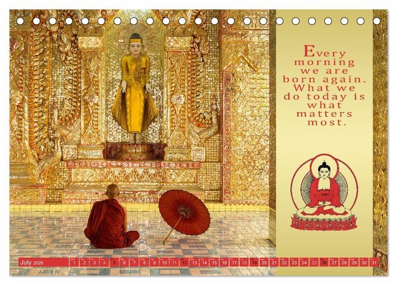 QUALITY - High-quality photo calendar with 12 beautiful images on light-resistant paper, robust spiral binding.SUSTAINABLE - Significant waste reduction due to print-on-demand production, environmentally friendly FSC-certified paper, produced locally, climate-conscious logistical processes.PERFECT GIFT - calendars for friends and family, for children, all ages and all occasions, from Christmas to birthdays and everything in between.LOTS OF CHOICE - Wall calendars in different sizes (DIN A4 and DIN A3), for any topic and personal taste, featuring photography, painting and illustrations.Words of Buddha von Autor(in): Mario Weigt
