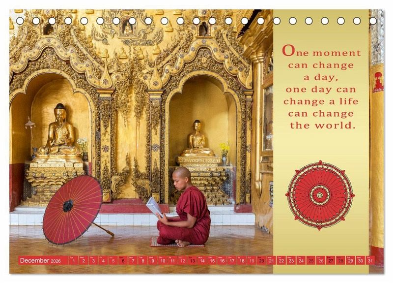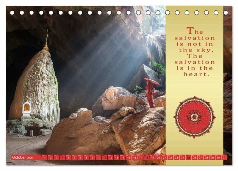The life and teaching of Gautama Buddha are followed by millions of Buddhists over the world. Mario Weigt's calendar includes a beautiful photo series, THE RED UMBRELLA, along with Buddhist wisdoms.
