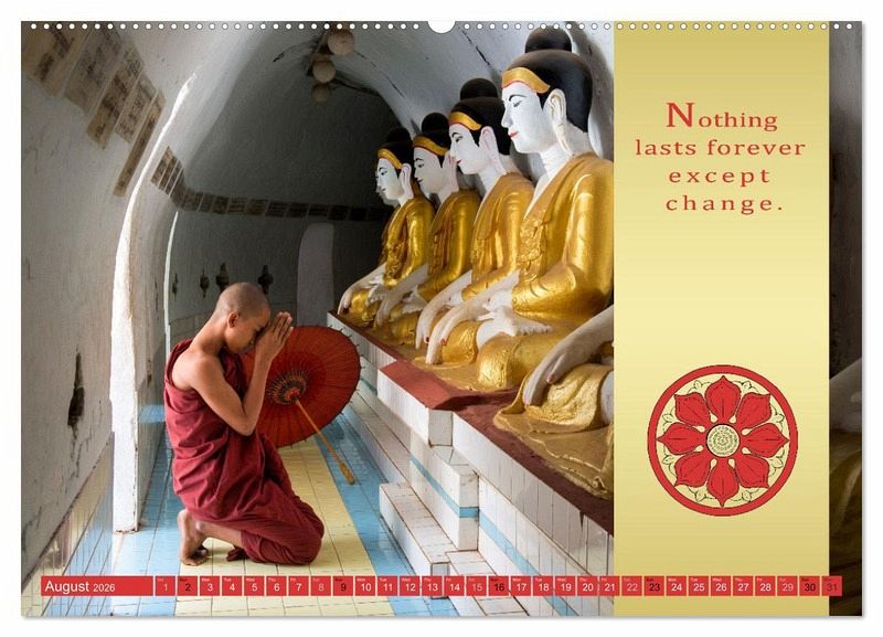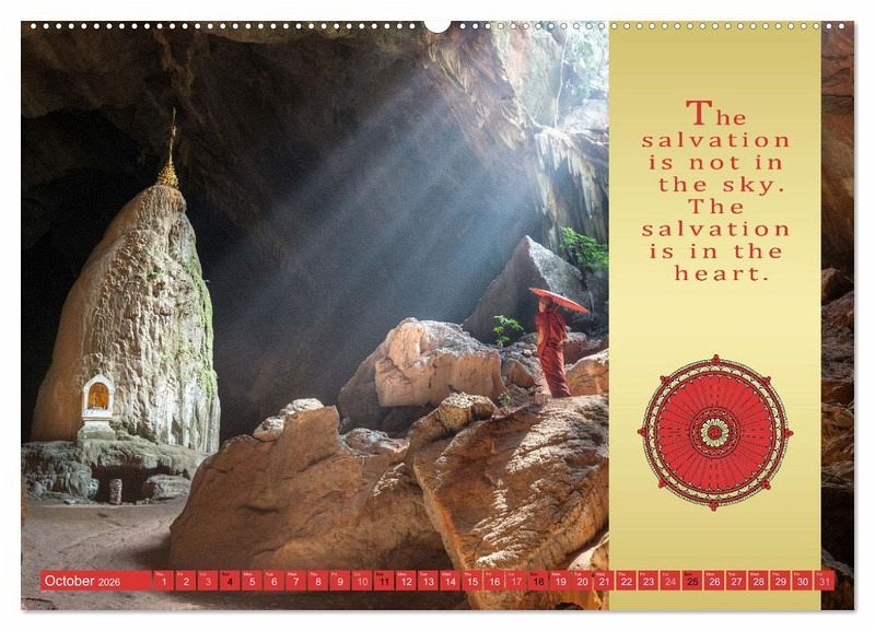 The life and teaching of Gautama Buddha are followed by millions of Buddhists over the world. Mario Weigt's calendar includes a beautiful photo series, THE RED UMBRELLA, along with Buddhist wisdoms.