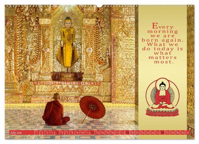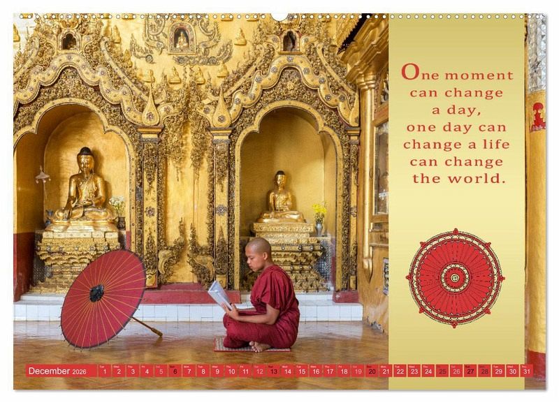 PREMIUM COLLECTION - Brilliant photo calendar with 12 beautiful motifs, high-gloss art print in museum quality.QUALITY - high-quality materials, sturdy back cover with 2 innovative insert pockets for optimum presentation on the wall.SUSTAINABLE - significant reduction in waste thanks to customised one-off production, environmentally friendly FSC-certified paper, production in Germany, climate-conscious logistics.PERFECT GIFT - calendars for friends and family, for children and adults, young and old, for Christmas, birthdays or in between.Words of Buddha von Autor(in): Mario Weigt