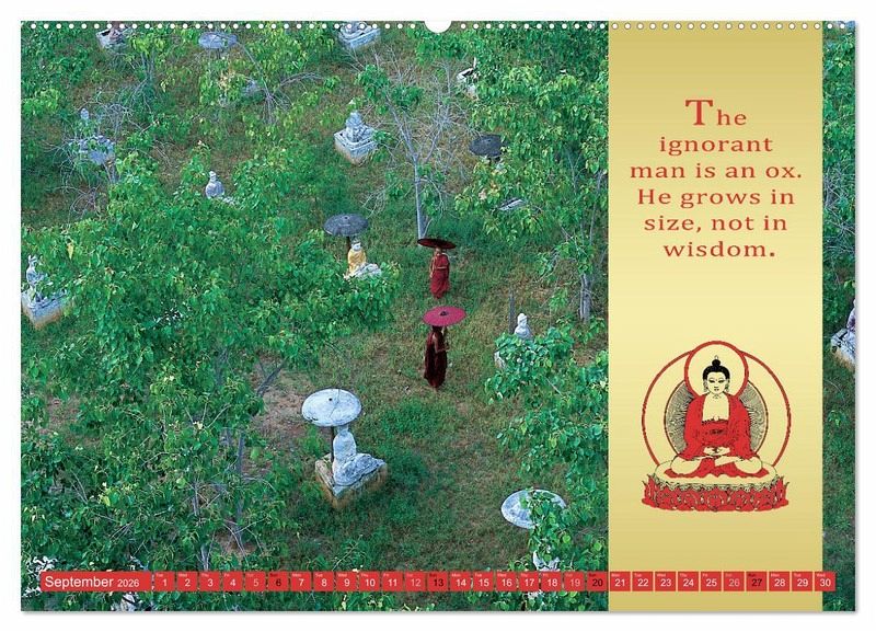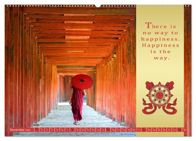 The life and teaching of Gautama Buddha are followed by millions of Buddhists over the world. Mario Weigt's calendar includes a beautiful photo series, THE RED UMBRELLA, along with Buddhist wisdoms.