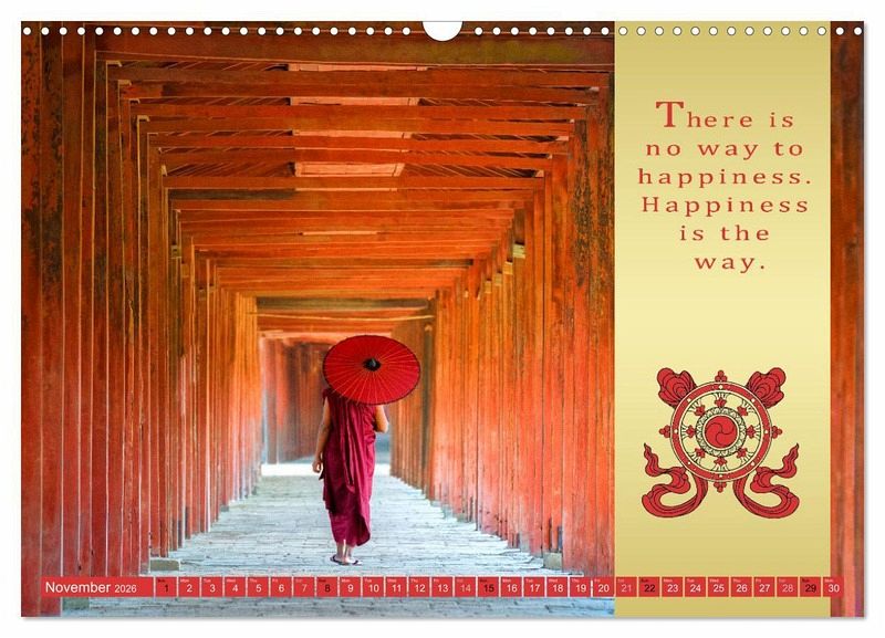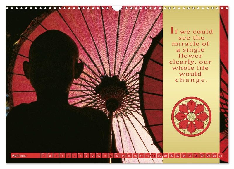 The life and teaching of Gautama Buddha are followed by millions of Buddhists over the world. Mario Weigt's calendar includes a beautiful photo series, THE RED UMBRELLA, along with Buddhist wisdoms.