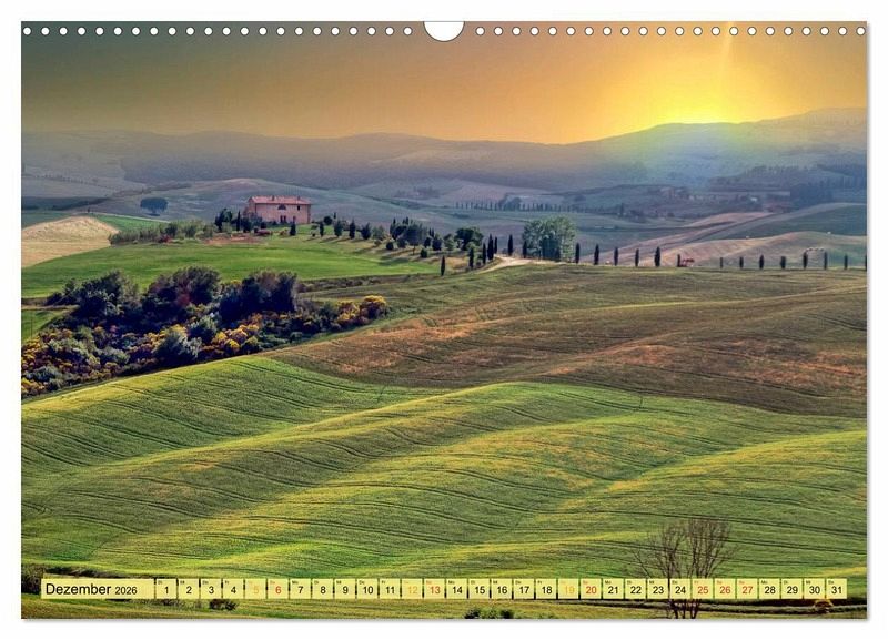 QUALITÄT - Hochwertiger Fotokalender mit 12 wunderschönen Motiven auf lichtbeständigem Bilderdruckpapier, robuste Spiralbindung mit Aufhängebügel.NACHHALTIG - deutliche Abfallreduzierung durch bedarfsgerechte Einzelstückfertigung, umweltfreundliches FSC-zertifiziertes Papier, Produktion in Deutschland, klimabewusste Logistik.PERFEKTES GESCHENK - Kalender für Freunde und Familie, für Kinder und Erwachsene, jung und alt, zu Weihnachten, Geburtstag oder zwischendurch.VIELFALT - Bildkalender in verschiedenen Formaten, z.B. DIN A5, DIN A4, DIN A3 sowie DIN A2. Ob Naturmotiv, Gemälde oder Fotos, ideal für ein persönliches Wohlfühlambiente.Malerische, sanfte Hügellandschaft mit Weinbaugebieten, Kulturstätten, Kunstschätzen, bedeutenden Städten und kulinarischen Spezialitäten in einer Region mit mediterranem Klima - die Toskana. von Autor(in): Peter Roder