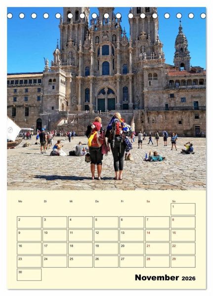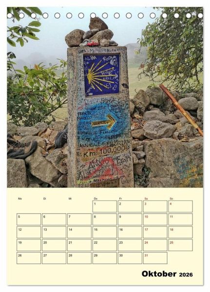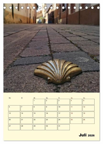 Jakobsweg, Camino de Santiago, Bezeichnung für eine Reihe von Pilgerwegen in Europa, die alle das Grab des Apostels Jakobus in Santiago de Compostela in Spanien zum Ziel haben. Hauptsächlich ist jedoch der Weg Camino Francés gemeint, der von den Pyrenäen nach Santiago de Compostela führt. Ein wunderschöner Kalender für alle, die diesen Weg schon einmal gegangen sind, ihn noch gehen wollen oder einfach Freude daran haben.