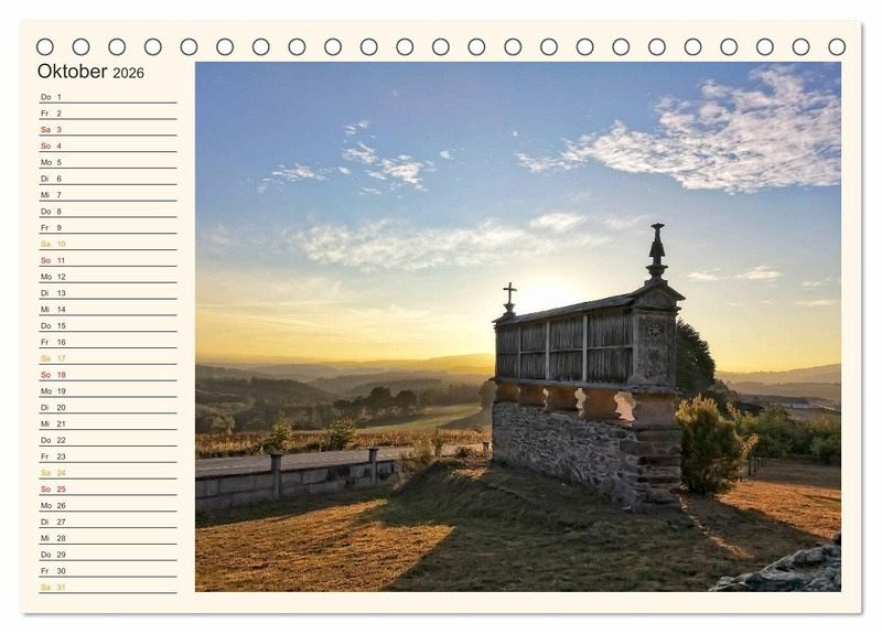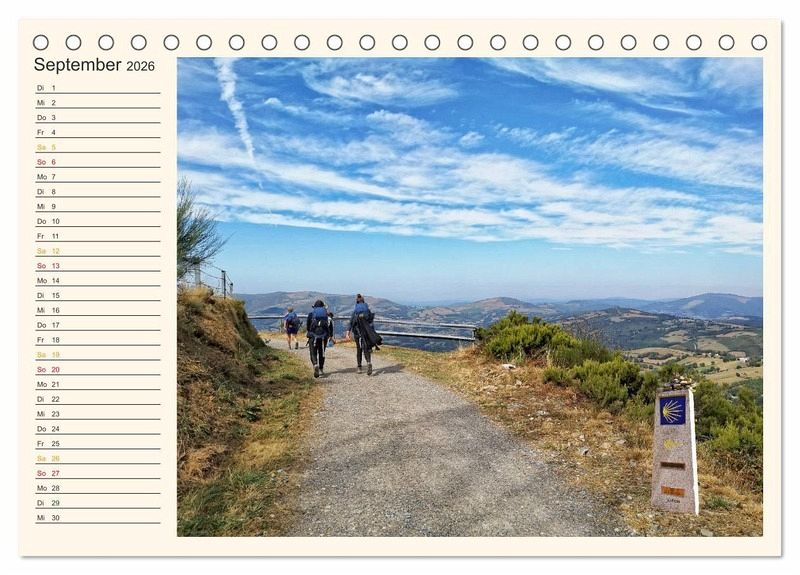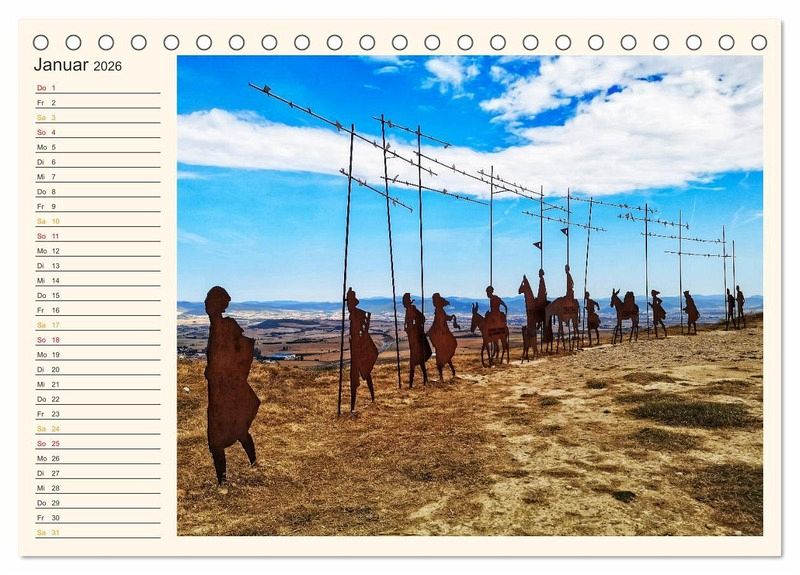 Jakobsweg, Camino de Santiago, Bezeichnung für eine Reihe von Pilgerwegen in Europa, die alle das angebliche Grab des Apostels Jakobus in Santiago de Compostela in Spanien zum Ziel haben. Hauptsächlich ist jedoch der Weg Camino Francés gemeint, der von den Pyrenäen nach Santiago de Compostela führt. Ein wunderschöner Kalender für alle, die diesen Weg schon einmal gegangen sind, ihn noch gehen wollen oder einfach Freude daran haben.