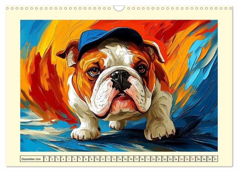 QUALITÄT - Hochwertiger Fotokalender mit 12 wunderschönen Motiven auf lichtbeständigem Bilderdruckpapier, robuste Spiralbindung mit Aufhängebügel.NACHHALTIG - deutliche Abfallreduzierung durch bedarfsgerechte Einzelstückfertigung, umweltfreundliches FSC-zertifiziertes Papier, Produktion in Deutschland, klimabewusste Logistik.PERFEKTES GESCHENK - Kalender für Freunde und Familie, für Kinder und Erwachsene, jung und alt, zu Weihnachten, Geburtstag oder zwischendurch.VIELFALT - Bildkalender in verschiedenen Formaten, z.B. DIN A5, DIN A4, DIN A3 sowie DIN A2. Ob Naturmotiv, Gemälde oder Fotos, ideal für ein persönliches Wohlfühlambiente.Farbenfroher Kunst, in der Bulldoggen in lebhaften Ölgemälden erstrahlen von Autor(in): Rose Hurley