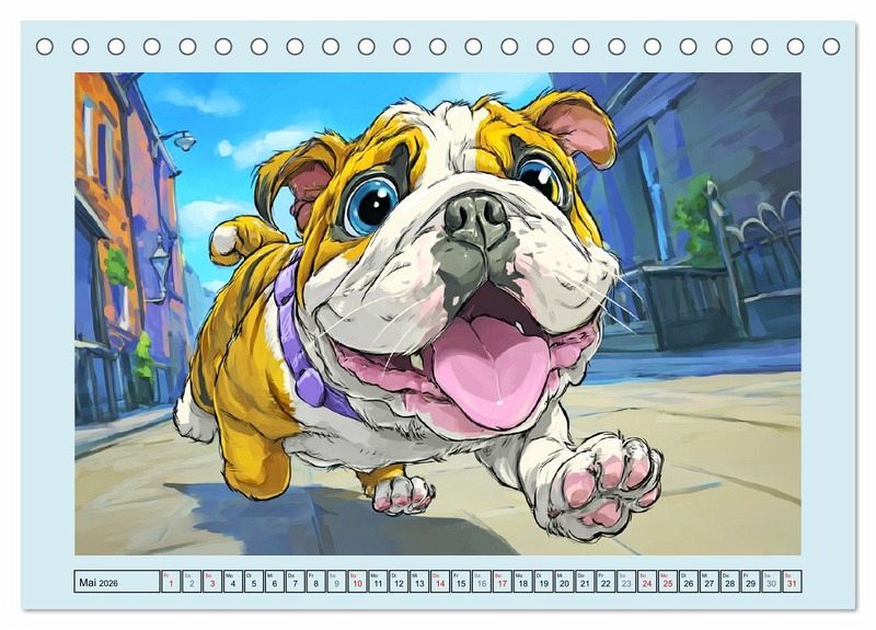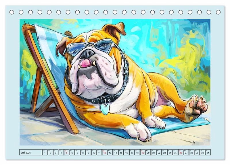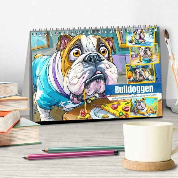Dieser liebevoll gestaltete Cartoon-Kalender zeigt die lustige Welt der English Bulldogs - charmant, dickköpfig und zum Knuddeln. In humorvollen Illustrationen erleben wir die kleinen Eigenheiten dieser besonderen Hunderasse. Ob faul auf dem Sofa, mit Sonnenbrille oder Hut - jede Szene bringt uns zum Schmunzeln. Alle Bilder wurden mit der Hilfe von KI erstellt und sind ein Muss für alle Bulldoggen-Fans mit Sinn für Humor!