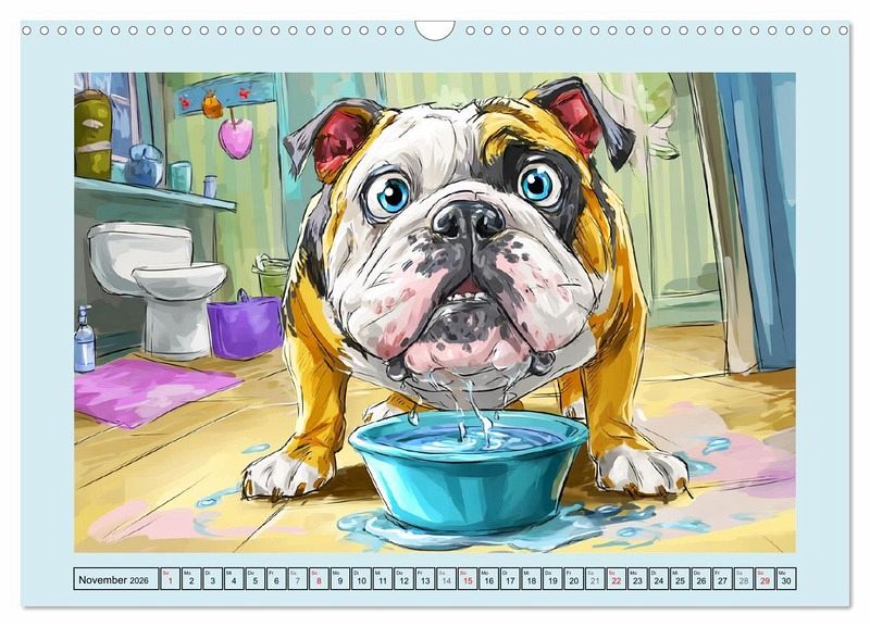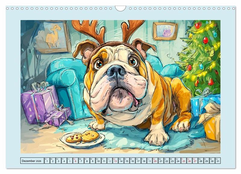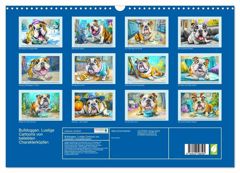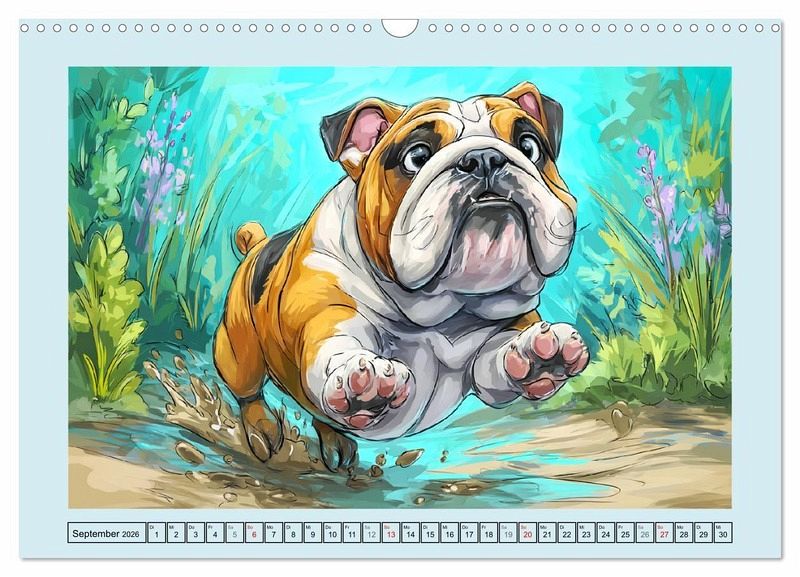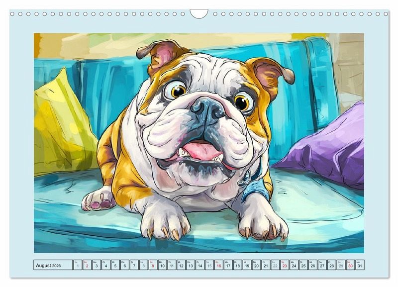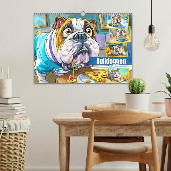 Dieser liebevoll gestaltete Cartoon-Kalender zeigt die lustige Welt der English Bulldogs - charmant, dickköpfig und zum Knuddeln. In humorvollen Illustrationen erleben wir die kleinen Eigenheiten dieser besonderen Hunderasse. Ob faul auf dem Sofa, mit Sonnenbrille oder Hut - jede Szene bringt uns zum Schmunzeln. Alle Bilder wurden mit der Hilfe von KI erstellt und sind ein Muss für alle Bulldoggen-Fans mit Sinn für Humor!
