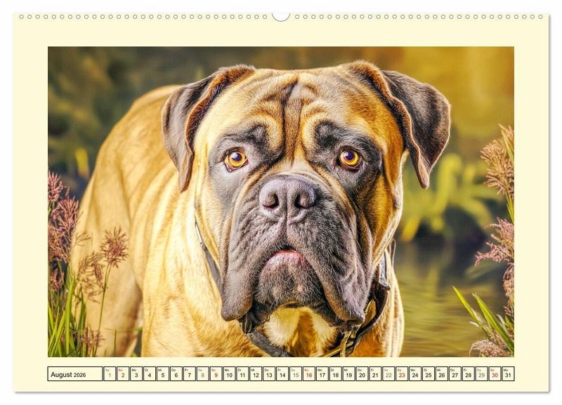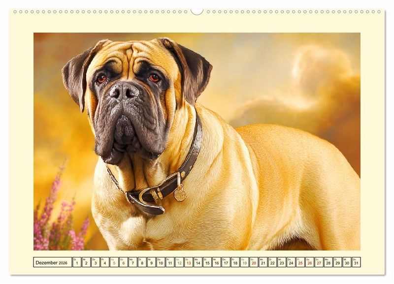 Dieser Kalender widmet sich dem kraftvollen und zugleich sanften Wesen des Bullmastiffs. Jedes Bild fängt die ruhige Autorität, die Treue und den Beschützerinstinkt dieser majestätischen Hunderasse ein. Ob in Bewegung oder in Ruhe - der Bullmastiff beeindruckt durch seine Präsenz und Gelassenheit. Alle Illustrationen wurden mit der Hilfe von KI erstellt und zeigen Momente aus dem Leben dieser mächtigen Hunde, die sowohl als verlässliche Gefährten als auch als wachsame Beschützer glänzen.