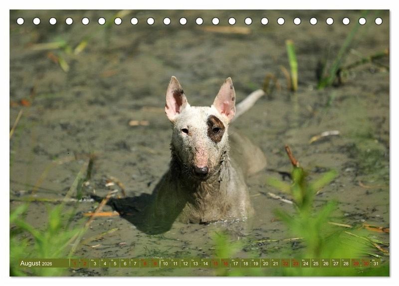 August: Bullterrier beim Schlammbad