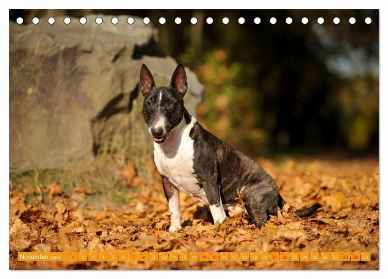 November: Bullterrier im Herbstlaub