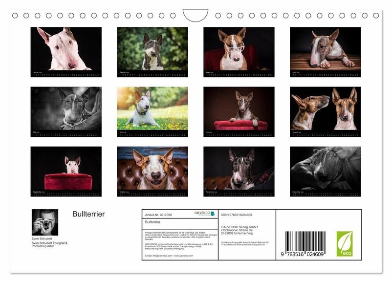 QUALITÄT - Hochwertiger Fotokalender mit 12 wunderschönen Motiven auf lichtbeständigem Bilderdruckpapier, robuste Spiralbindung mit Aufhängebügel.NACHHALTIG - deutliche Abfallreduzierung durch bedarfsgerechte Einzelstückfertigung, umweltfreundliches FSC-zertifiziertes Papier, Produktion in Deutschland, klimabewusste Logistik.PERFEKTES GESCHENK - Kalender für Freunde und Familie, für Kinder und Erwachsene, jung und alt, zu Weihnachten, Geburtstag oder zwischendurch.VIELFALT - Bildkalender in verschiedenen Formaten, z.B. DIN A5, DIN A4, DIN A3 sowie DIN A2. Ob Naturmotiv, Gemälde oder Fotos, ideal für ein persönliches Wohlfühlambiente.Bullterrier, die verkannte Rasse von Autor(in): Schuberts-Fotografie