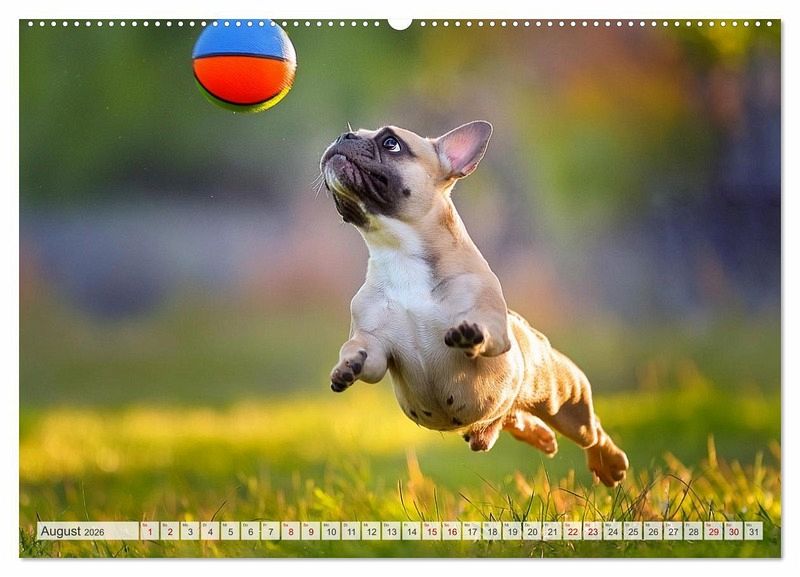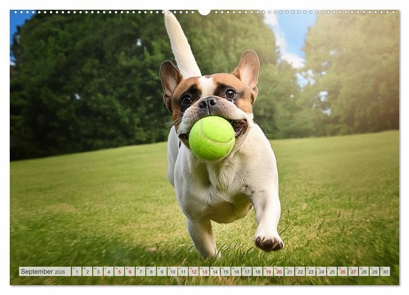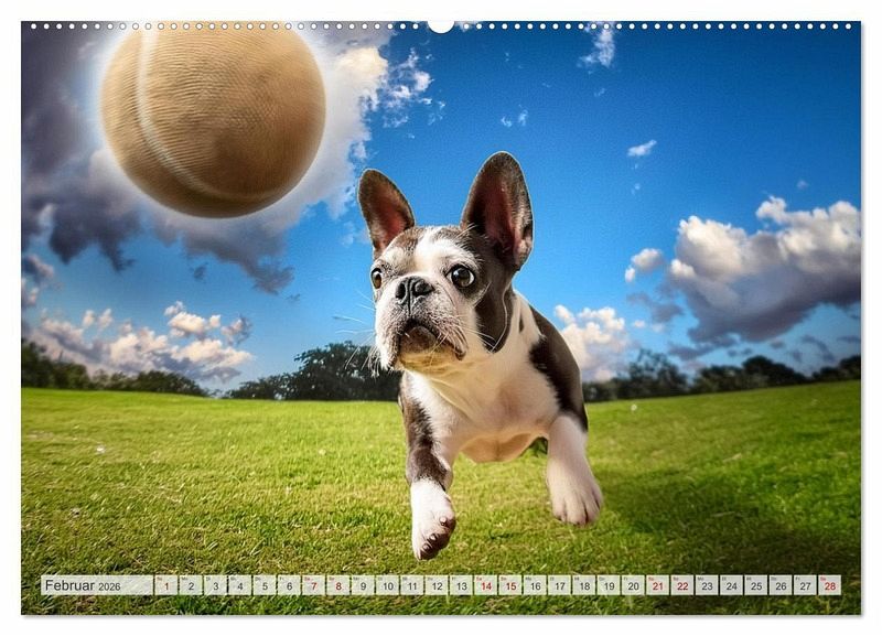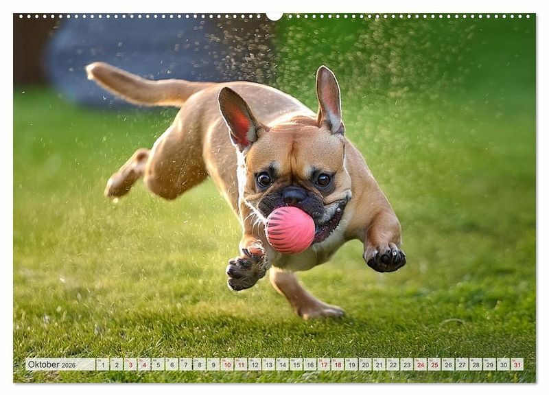 Hier kommen Liebhaber von Französischen Bulldoggen, und solche die es werden wollen, auf ihre Kosten. Diese liebenswerten, fröhlichen Hunde lieben Bälle. Es ist eine Freude, ihnen beim spielen zuzuschauen. Für diese mit KI erstellten Bilder dienten selbst erstellte Fotos, die bei einem Treffen von Französischen Bulldoggen entstanden. Verschönern Sie jeden Raum mit diesem bezaubernden Motiv Kalender. Die verspielten Bilder dieser charmanten Hunde werden sicherlich ein Lächeln auf Ihr Gesicht zaubern.