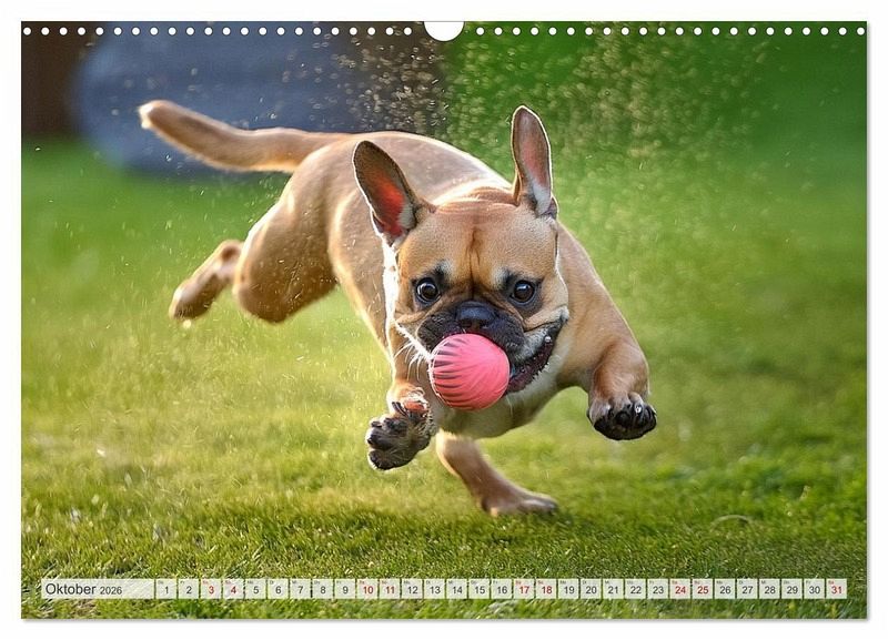 Oktober: Voller Einsatz einer Französischen Bulldogge beim Ball fangen