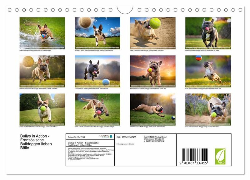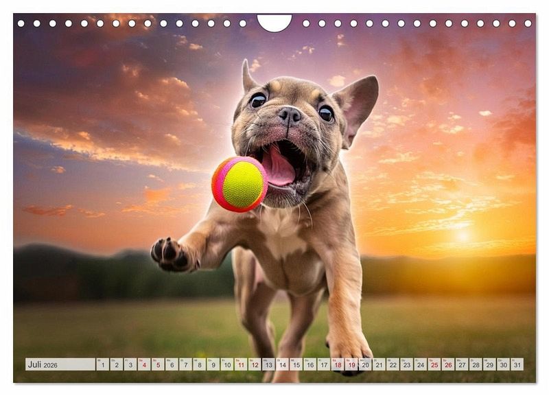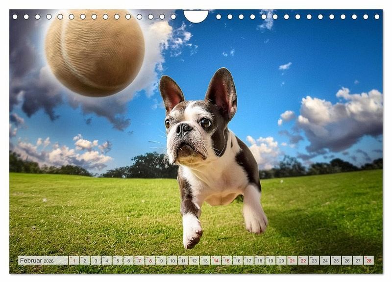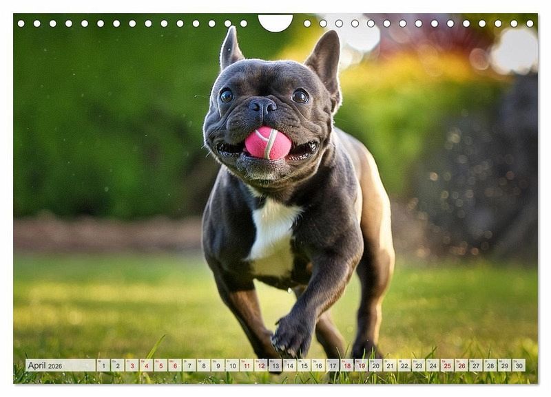 Hier kommen Liebhaber von Französischen Bulldoggen, und solche die es werden wollen, auf ihre Kosten. Diese liebenswerten, fröhlichen Hunde lieben Bälle. Es ist eine Freude, ihnen beim spielen zuzuschauen. Für diese mit KI erstellten Bilder dienten selbst erstellte Fotos, die bei einem Treffen von Französischen Bulldoggen entstanden. Verschönern Sie jeden Raum mit diesem bezaubernden Motiv Kalender. Die verspielten Bilder dieser charmanten Hunde werden sicherlich ein Lächeln auf Ihr Gesicht zaubern.