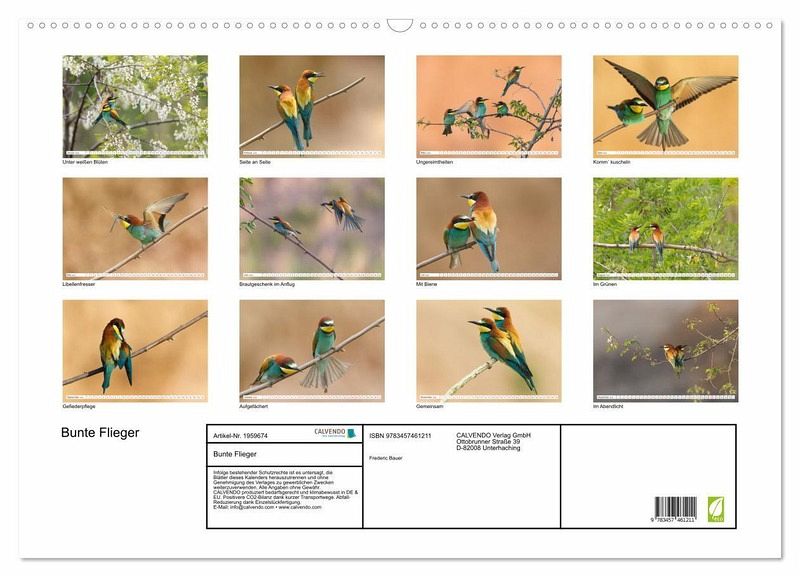 QUALITÄT - Hochwertiger Fotokalender mit 12 wunderschönen Motiven auf lichtbeständigem Bilderdruckpapier, robuste Spiralbindung mit Aufhängebügel.NACHHALTIG - deutliche Abfallreduzierung durch bedarfsgerechte Einzelstückfertigung, umweltfreundliches FSC-zertifiziertes Papier, Produktion in Deutschland, klimabewusste Logistik.PERFEKTES GESCHENK - Kalender für Freunde und Familie, für Kinder und Erwachsene, jung und alt, zu Weihnachten, Geburtstag oder zwischendurch.VIELFALT - Bildkalender in verschiedenen Formaten, z.B. DIN A5, DIN A4, DIN A3 sowie DIN A2. Ob Naturmotiv, Gemälde oder Fotos, ideal für ein persönliches Wohlfühlambiente.Farbenprächtige Vögel in unterschiedlichen Szenen von Autor(in): Frederic Bauer