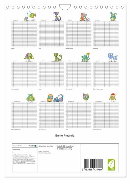 14 Seiten bestehend aus 1 Cover 12 Monatsseiten 1 Indexseite Papprücken hinten