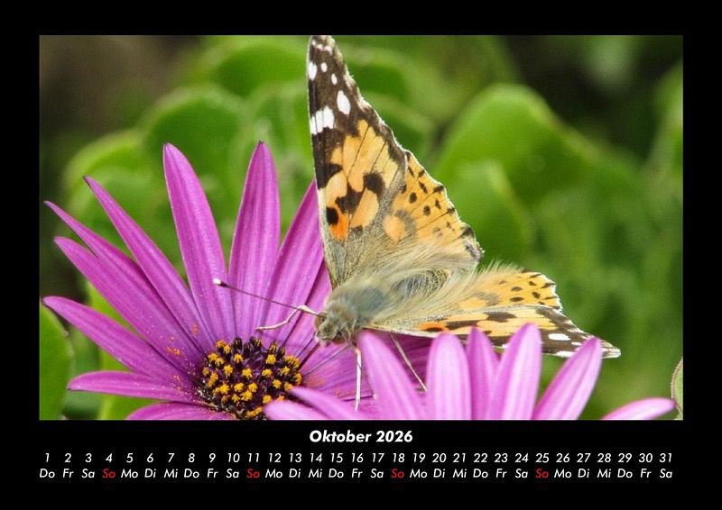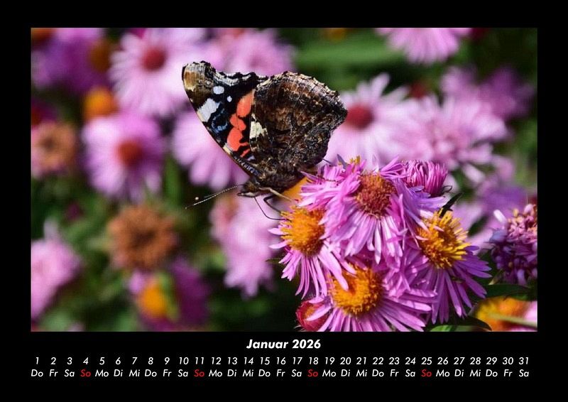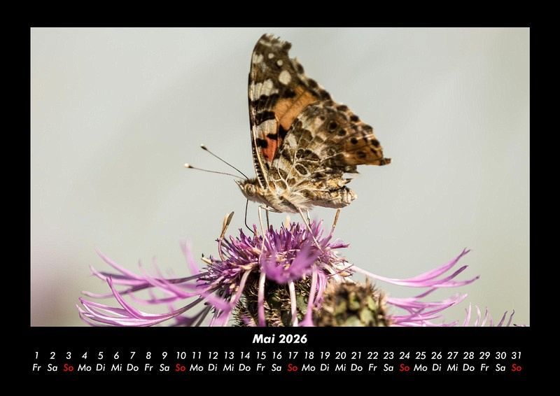 Bunte Pracht der Schmetterlinge 2026 Motivkalender DIN A3 Eine farbenfrohe Auswahl heimischer Schmetterlinge in ihrem natürlichen Umfeld. Diese Bilder vermittelt einen Hauch von Sommer und Unbeschwertheit. Vero-Kalender erhalten Sie mit Motiven aus den verschiedensten Themenbereichen wie Natur, Blumen und Landschaft, Tierwelt, Architektur, Reise und Urlaub, Technik, Automobil und Eisenbahn, Emotionen, Sport und Musik. Gedruckt werden die Monats-Kalender aus dem Vero Verlag auf hochwertigem Kalenderbogen in Premium-Qualität und verschiedenen Größen. Die Vielfältigkeit der Motive unserer Foto-Kalender ist dank der Zusammenarbeit mit kreativen Fotografen möglich.