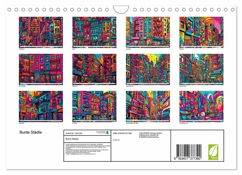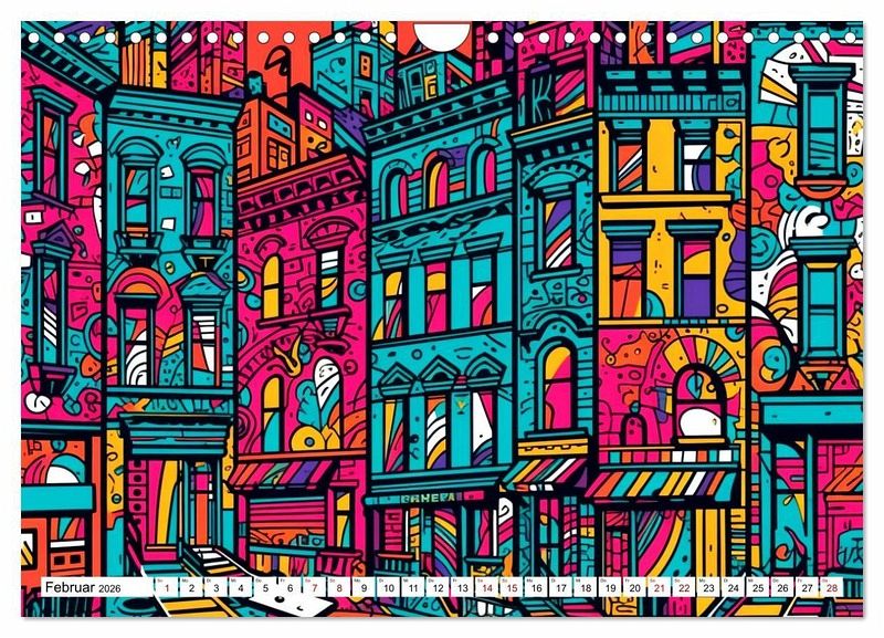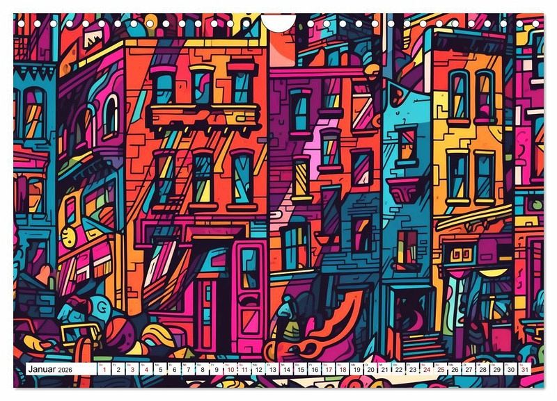 Die zwölf Bilder in diesem Wandkalender zeigen Städte auf eine neue und inspirierende Art und Weise. Jedes Bild ist einzigartig und wird Sie jeden Monat aufs Neue begeistern. Bestellen Sie noch heuteIhren eigenen Wandkalender mit bunten Städten im Rizzo Doodle Style und bringen Sie eine kreative, moderne Note in Ihr Zuhause oder Büro!