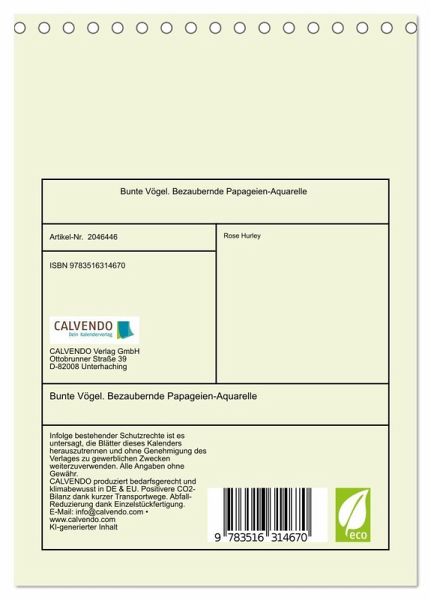 QUALITÄT - Hochwertiger Fotokalender mit 12 wunderschönen Motiven auf lichtbeständigem Bilderdruckpapier, robuste Spiralbindung.NACHHALTIG - deutliche Abfallreduzierung durch bedarfsgerechte Einzelstückfertigung, umweltfreundliches FSC-zertifiziertes Papier, Produktion in Deutschland, klimabewusste Logistik.PERFEKTES GESCHENK - Kalender für Freunde und Familie, für Kinder und Erwachsene, jung und alt, zu Weihnachten, Geburtstag oder zwischendurch.VIELFALT - Bildkalender in verschiedenen Formaten, z.B. DIN A5, DIN A4, DIN A3 sowie DIN A2. Ob Naturmotiv, Gemälde oder Fotos, ideal für ein persönliches Wohlfühlambiente.Gefiederte Schönheiten mit Charakter und Köpfchen von Autor(in): Rose Hurley