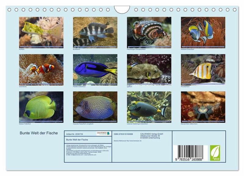 QUALITÄT - Hochwertiger Fotokalender mit 12 wunderschönen Motiven auf lichtbeständigem Bilderdruckpapier, robuste Spiralbindung mit Aufhängebügel.NACHHALTIG - deutliche Abfallreduzierung durch bedarfsgerechte Einzelstückfertigung, umweltfreundliches FSC-zertifiziertes Papier, Produktion in Deutschland, klimabewusste Logistik.PERFEKTES GESCHENK - Kalender für Freunde und Familie, für Kinder und Erwachsene, jung und alt, zu Weihnachten, Geburtstag oder zwischendurch.VIELFALT - Bildkalender in verschiedenen Formaten, z.B. DIN A5, DIN A4, DIN A3 sowie DIN A2. Ob Naturmotiv,Gemälde oder Fotos, ideal für ein persönliches Wohlfühlambiente.Jahreskalender mit schönen Fischfotos von Autor(in): Barbara Mielewczyk