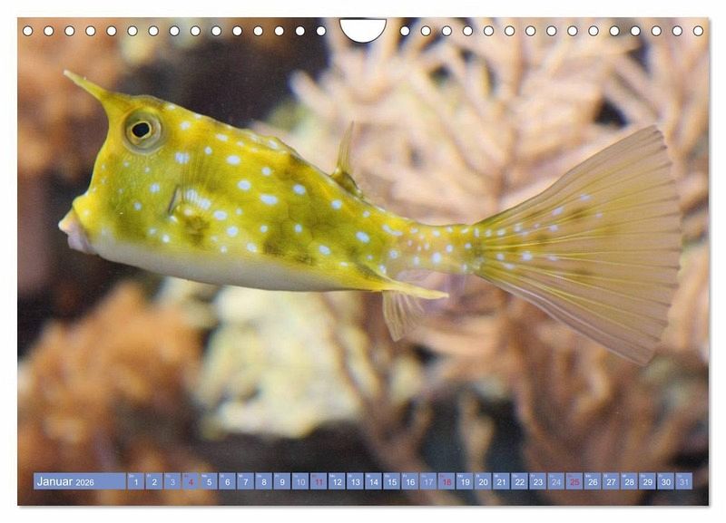 Fische mit ihren bunten Farben sind nicht nur in der Aquaristik beliebt. Ihre Artenvielfalt, ihre verschiedenen Farben, ihre Muster und gar ihr Verhalten faszinieren alle. Obwohl die Auswahl schwer fiel, fanden doch ein paar schöne Vertreter ihren Weg in diesen Monatskalender mit 12 verschiedenen Fotos. Ein Blickfang nicht nur für Aquarianer!