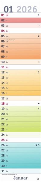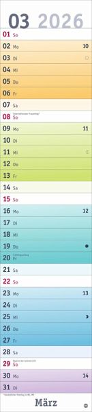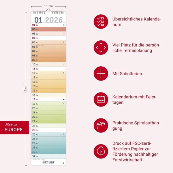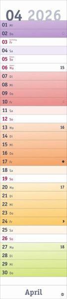 - Alle Termine auf einen Blick: farbenfroher Wandkalender 2026 zum Eintragen- Fröhliches Design trifft straffe Orga: Der Monatsplaner 2026 mit dem gewissen Ewas - Schulferien und Feiertage: Langplaner mit Überblick im Format 11 x 49 cm- Terminplaner für zu Hause oder Büro: Kalender mit viel Platz für alle wichtigen Erinnerungen- Fröhlich-bunter Streifenkalender von Heye aus dem Athesia Kalenderverlag