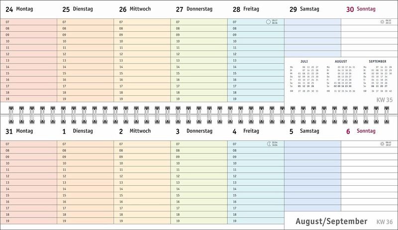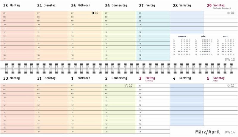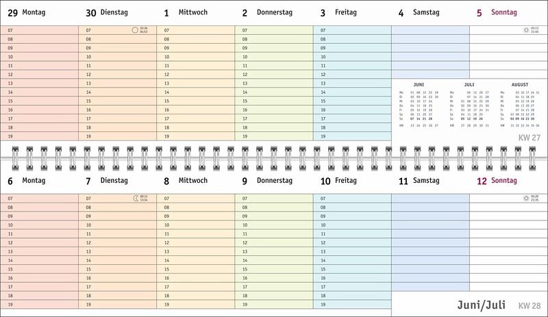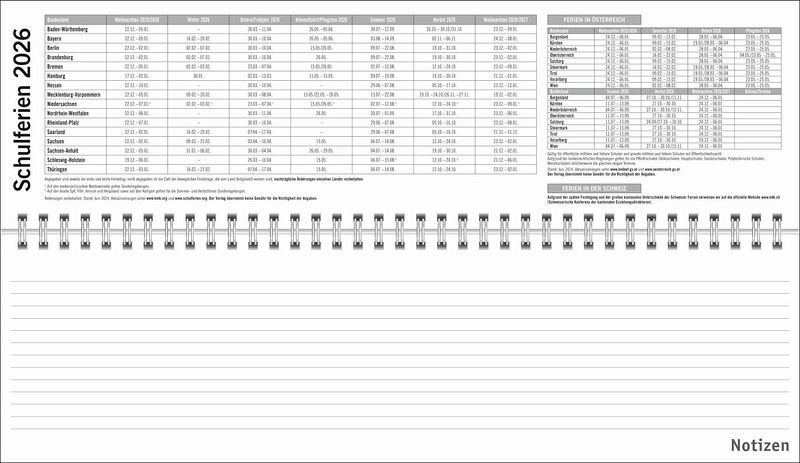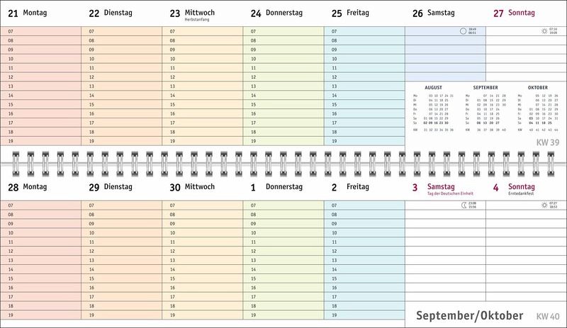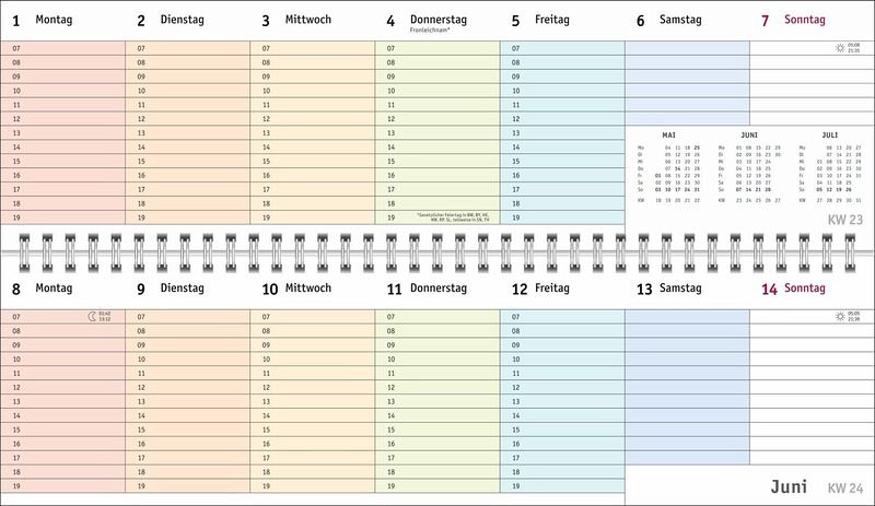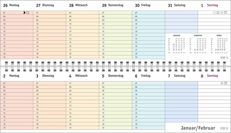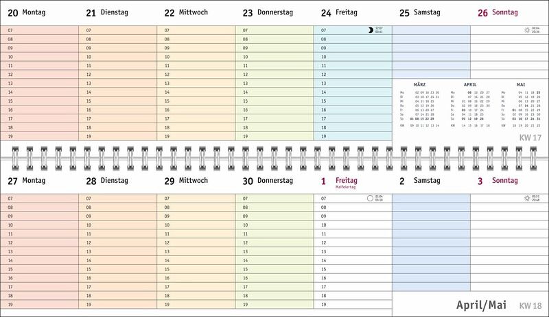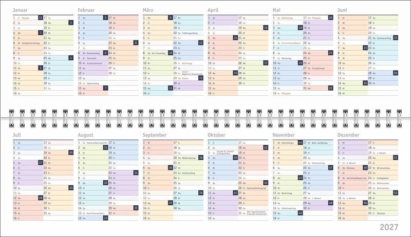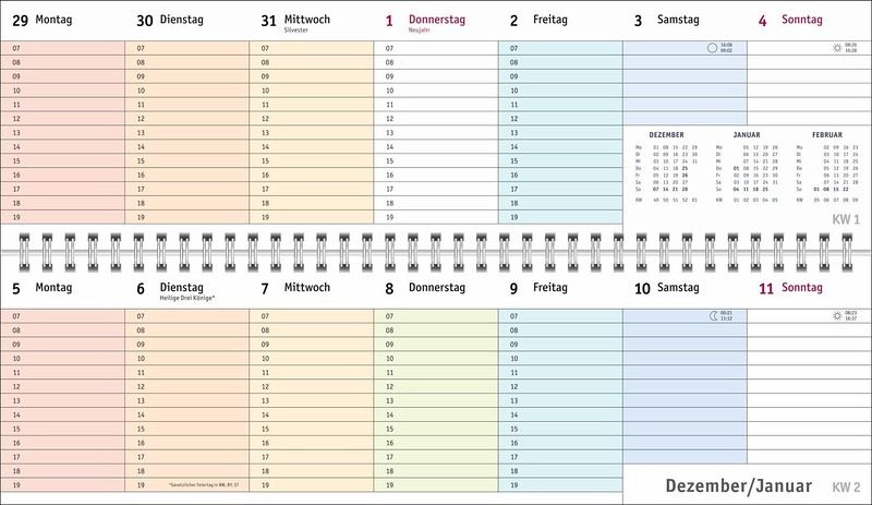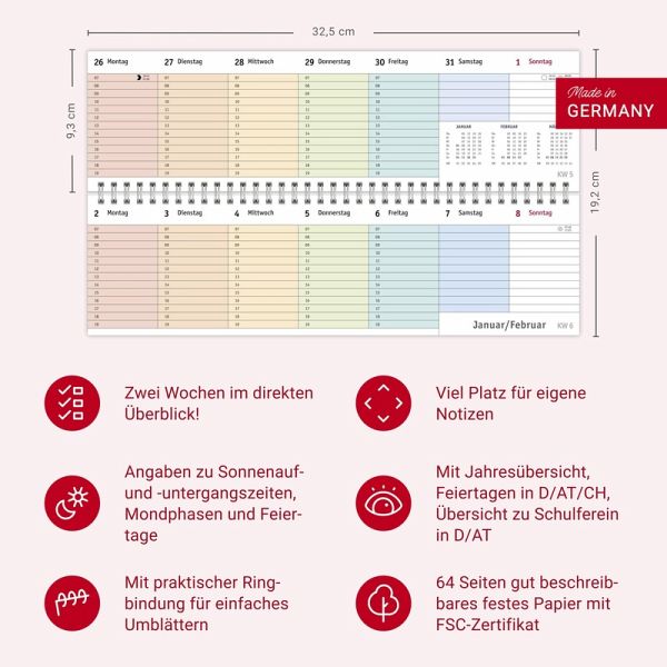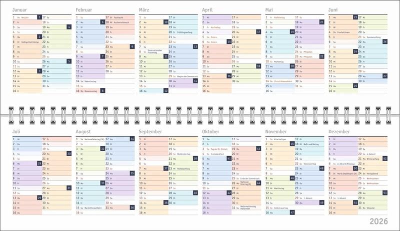 - Ein farbenfroher Organisations-Allrounder: Der Bunte-Wochen-Tischkalender 2026- Meetings, Konferenzen, To-dos: Querplaner im Format 32,5 x 9,3 cm mit viel Platz für alle wichtigen Termine- Hier fällt keine Abgabefrist unter den (Büro-)Tisch: Jeder Tag in einer anderen leuchtenden Farbe für maximale Übersicht- Woche für Woche ein zuverlässiger Terminplaner, auch über das Jahr hinaus: Mit Jahresübersichten 2026 und 2027 und Schulferien- Planung leichtgemacht: Die Tischquerkalender von Heye aus dem Athesia Kalenderverlag