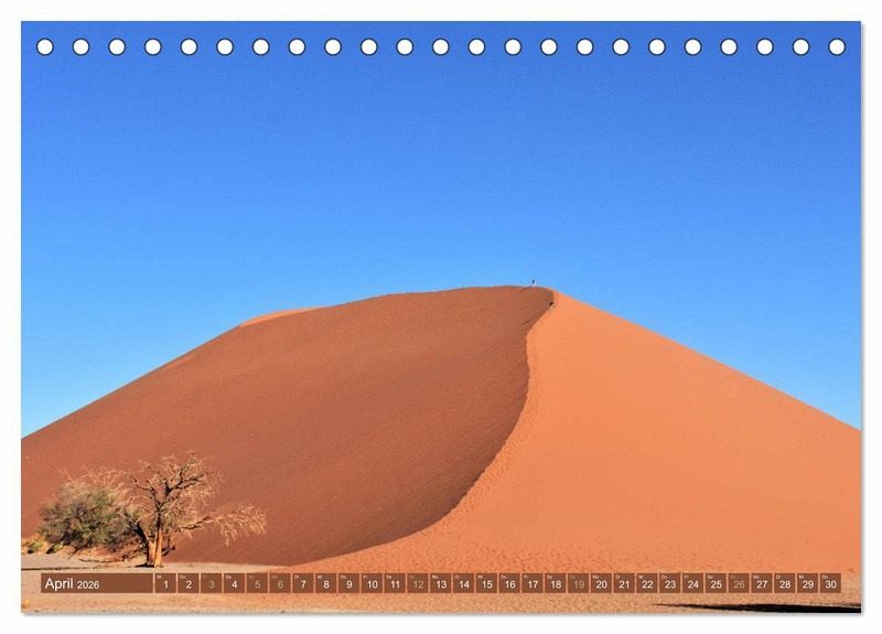 April: Rot knallt in das Blau: Die Düne 45 im Sossusvlei Nationalpark der Namib Wüste in Namibia