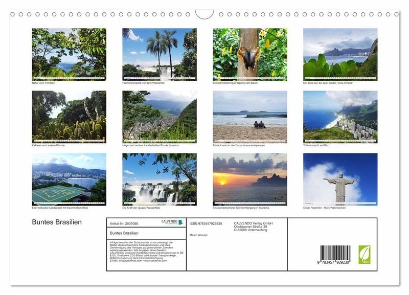 QUALITÄT - Hochwertiger Fotokalender mit 12 wunderschönen Motiven auf lichtbeständigem Bilderdruckpapier, robuste Spiralbindung mit Aufhängebügel.NACHHALTIG - deutliche Abfallreduzierung durch bedarfsgerechte Einzelstückfertigung, umweltfreundliches FSC-zertifiziertes Papier, Produktion in Deutschland, klimabewusste Logistik.PERFEKTES GESCHENK - Kalender für Freunde und Familie, für Kinder und Erwachsene, jung und alt, zu Weihnachten, Geburtstag oder zwischendurch.VIELFALT - Bildkalender in verschiedenen Formaten, z.B. DIN A5, DIN A4, DIN A3 sowie DIN A2. Ob Naturmotiv, Gemälde oder Fotos, ideal für ein persönliches Wohlfühlambiente.Brasilien's Natur - kraftvoll, schön, magsich. von Autor(in): Maren Woiczyk