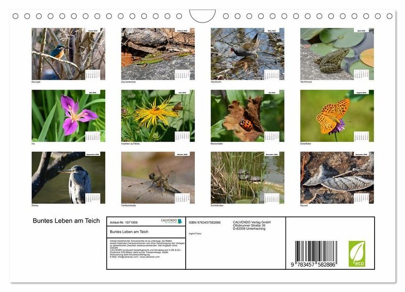 QUALITÄT - Hochwertiger Fotokalender mit 12 wunderschönen Motiven auf lichtbeständigem Bilderdruckpapier, robuste Spiralbindung mit Aufhängebügel.NACHHALTIG - deutliche Abfallreduzierung durch bedarfsgerechte Einzelstückfertigung, umweltfreundliches FSC-zertifiziertes Papier, Produktion in Deutschland, klimabewusste Logistik.PERFEKTES GESCHENK - Kalender für Freunde und Familie, für Kinder und Erwachsene, jung und alt, zu Weihnachten, Geburtstag oder zwischendurch.VIELFALT - Bildkalender in verschiedenen Formaten, z.B. DIN A5, DIN A4, DIN A3 sowie DIN A2. Ob Naturmotiv, Gemälde oder Fotos, ideal für ein persönliches Wohlfühlambiente.Vielfältige Flora und Fauna am Teich von Autor(in): Ingrid Fran