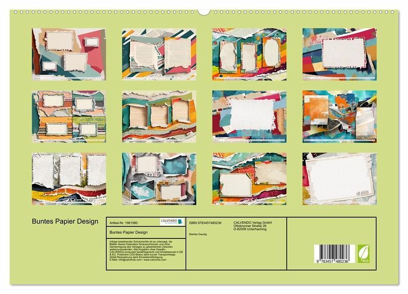 PREMIUM-LINIE - Brillanter Fotokalender mit 12 wunderschönen Motiven, Kunstdruck in Hochglanz in Museumsqualität.QUALITÄT - edle Materialien, stabile Rückwand mit 2 innovativen Einstecktaschen für eine optimale Präsentation an der Wand.NACHHALTIG - deutliche Abfallreduzierung durch bedarfsgerechte Einzelstückfertigung, umweltfreundliches FSC-zertifiziertes Papier, Produktion in Deutschland, klimabewusste Logistik.PERFEKTES GESCHENK - Kalender für Freunde und Familie, für Kinder und Erwachsene, jung und alt, zu Weihnachten, Geburtstag oder zwischendurch.Abstrakt und kreativ, Mixed Media, mit gerissenen Zeitschriften von Autor(in): Marlise Gaudig