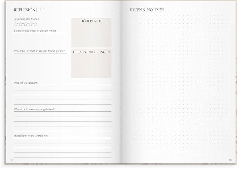 Ein Kalender für Lehrkräfte, die neben der Zeitplanung auch ihr Wohlbefinden in den Vordergrund stellen möchten. Der Kalender enthält Module für die Unterrichtsplanung, Ergebnisdokumentationen für Lehrkräfte und Schüler, Platz für Reflexionen und Zielverfolgung. Der Fokus liegt auf Erkenntnissen über das Lernen und darauf, wie man durch effektive Planung, Reflexion und Nachverfolgung Wohlbefinden und weniger Stress schaffen kann. Der Kalender ist für alle Jahrgangsstufen geeignet, von der ersten Klasse bis zum Gymnasium. Er enthält eine jährliche Übersicht mit Zielen, eine Monatsübersicht, Wochenübersichten mit viel Platz für Planung, Höhepunkte, reflektierende Fragen, Testergebnisse, Klassenlisten, Urlaubsplanung und mehr. Bleiben Sie motiviert, fokussiert und holen Sie das Beste aus Ihrem Beruf als Lehrkraft heraus, wobei Ihr eigenes Wohlbefinden im Mittelpunkt steht.