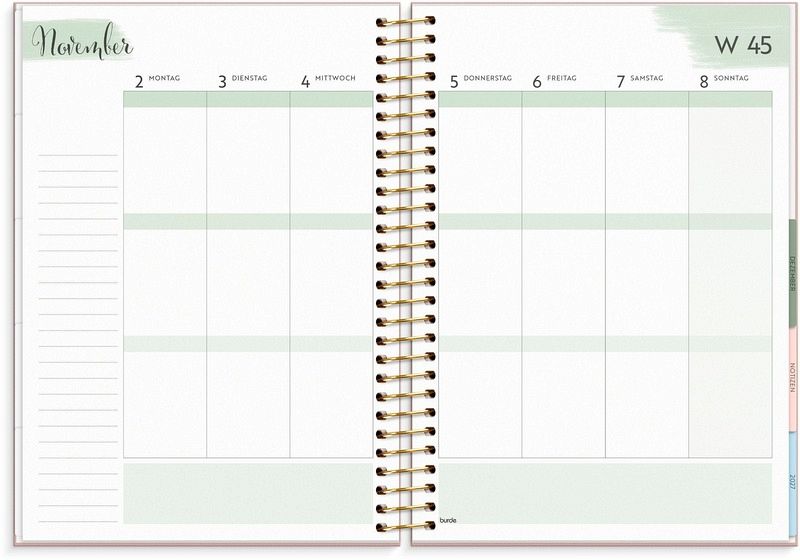 Wenn du viele Dinge im Blick behalten musst, ist es beruhigend, ein Werkzeug zu haben, das dir wirklich hilft, deine Zeit zu strukturieren. Life Organizer vermittelt ein luxuriöses Gefühl mit großzügiger Wochenplanung und klarer Monatsübersicht. Hier findest du viel Platz, um deine Tage zu planen, Listen zu schreiben, Erinnerungen festzuhalten und über das Leben nachzudenken. Der Kalender verfügt über praktische Registerkarten, die die Monate unterteilen, und mehrere Blätter mit Aufklebern, damit du zusätzlich aufpeppen kannst. Mach Planung auch zu einem Teil deines Lebensstils! Format: C5 (163x229 mm). Abmessung: 190 x 235 x 26 mm. Layout: Woche/2-Seiten. Vertikal. Kalendarium: 2025-12-29 - 2027-01-03. Einband: Karton mit Struktur. Spiralgebunden. Einzelheiten: Papiertasche. Inhalt: Monatsübersicht, Jahresübersichten, Monatsplanung, Monatsregisterkarten, Notizseiten, Stickerbogen, Jahresplan. Seitenzahl: 176. Umweltinformationen: FSC®.