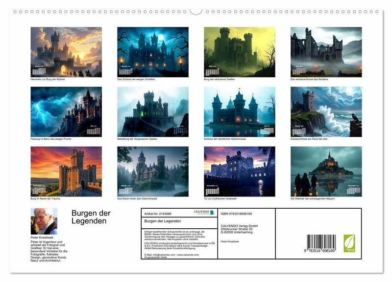 PREMIUM-LINIE - Brillanter Fotokalender mit 12 wunderschönen Motiven, Kunstdruck in Hochglanz in Museumsqualität.QUALITÄT - edle Materialien, stabile Rückwand mit 2 innovativen Einstecktaschen für eine optimale Präsentation an der Wand.NACHHALTIG - deutliche Abfallreduzierung durch bedarfsgerechte Einzelstückfertigung, umweltfreundliches FSC-zertifiziertes Papier, Produktion in Deutschland, klimabewusste Logistik.PERFEKTES GESCHENK - Kalender für Freunde und Familie, für Kinder und Erwachsene, jung und alt, zu Weihnachten, Geburtstag oder zwischendurch.Mystische Burgen voller Sagenzauber von Autor(in): Peter Kraaibeek