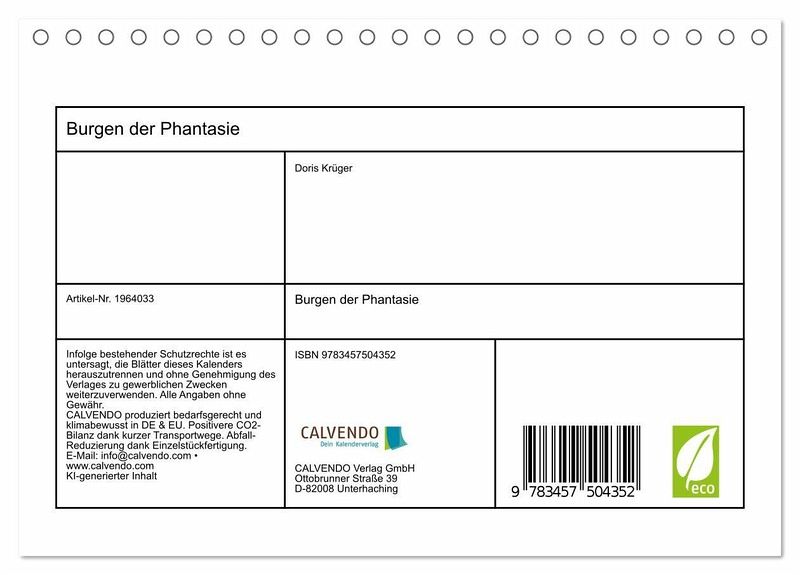 QUALITÄT - Hochwertiger Fotokalender mit 12 wunderschönen Motiven auf lichtbeständigem Bilderdruckpapier, robuste Spiralbindung.NACHHALTIG - deutliche Abfallreduzierung durch bedarfsgerechte Einzelstückfertigung, umweltfreundliches FSC-zertifiziertes Papier, Produktion in Deutschland, klimabewusste Logistik.PERFEKTES GESCHENK - Kalender für Freunde und Familie, für Kinder und Erwachsene, jung und alt, zu Weihnachten, Geburtstag oder zwischendurch.VIELFALT - Bildkalender in verschiedenen Formaten, z.B. DIN A5, DIN A4, DIN A3 sowie DIN A2. Ob Naturmotiv, Gemälde oder Fotos, ideal für ein persönliches Wohlfühlambiente.Mittelalterliche Burgen in einer fesselnden KI-Phantasiewelt von Autor(in): Doris Krüger