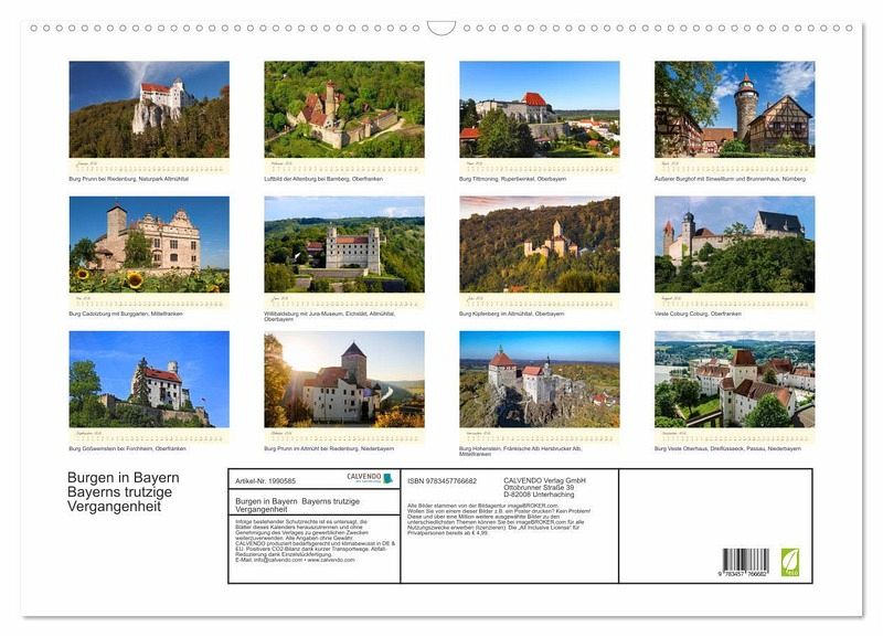 Die in diesem Kalender dargestellten zwölf Burgen können nur stellvertretend für die Vielzahl der bayerischen Burgen stehen. Sie zeugen von der der Baukunst des Mittelalters in Bayern.