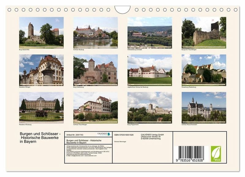 QUALITÄT - Hochwertiger Fotokalender mit 12 wunderschönen Motiven auf lichtbeständigem Bilderdruckpapier, robuste Spiralbindung mit Aufhängebügel.NACHHALTIG - deutliche Abfallreduzierung durch bedarfsgerechte Einzelstückfertigung, umweltfreundliches FSC-zertifiziertes Papier, Produktion in Deutschland, klimabewusste Logistik.PERFEKTES GESCHENK - Kalender für Freunde und Familie, für Kinder und Erwachsene, jung und alt, zu Weihnachten, Geburtstag oder zwischendurch.VIELFALT - Bildkalender in verschiedenen Formaten, z.B. DIN A5, DIN A4, DIN A3 sowie DIN A2. Ob Naturmotiv, Gemälde oder Fotos, ideal für ein persönliches Wohlfühlambiente.Eine kleine Auswahl der Schlösser und Burgen in Bayern von Autor(in): Lichtblicke