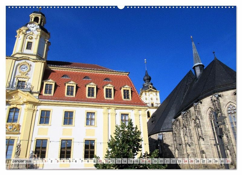 Januar: Rathaus und Marienkirche am Marktplatz von Weißenfels