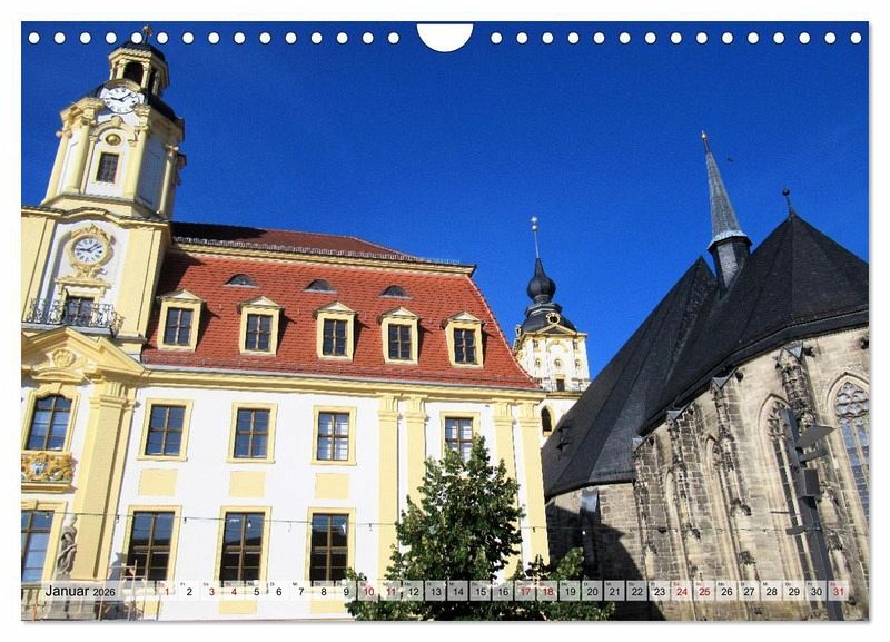 Januar: Rathaus und Marienkirche am Marktplatz von Weißenfels