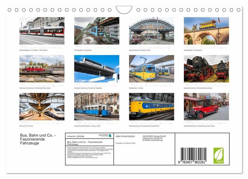 QUALITÄT - Hochwertiger Fotokalender mit 12 wunderschönen Motiven auf lichtbeständigem Bilderdruckpapier, robuste Spiralbindung mit Aufhängebügel.NACHHALTIG - deutliche Abfallreduzierung durch bedarfsgerechte Einzelstückfertigung, umweltfreundliches FSC-zertifiziertes Papier, Produktion in Deutschland, klimabewusste Logistik.PERFEKTES GESCHENK - Kalender für Freunde und Familie, für Kinder und Erwachsene, jung und alt, zu Weihnachten, Geburtstag oder zwischendurch.VIELFALT - Bildkalender in verschiedenen Formaten, z.B. DIN A5, DIN A4, DIN A3 sowie DIN A2. Ob Naturmotiv, Gemälde oder Fotos, ideal für ein persönliches Wohlfühlambiente.Die Traumwagen des öffentlichen Personenverkehrs auf exzellenten Fotos von Autor(in): Dietmar Scherf
