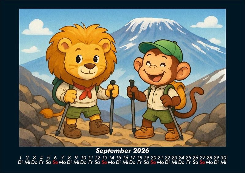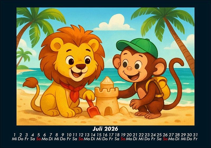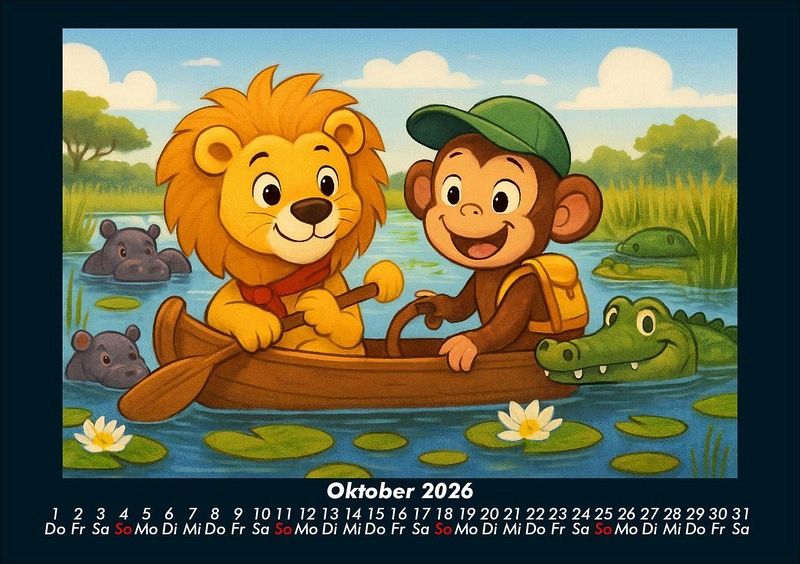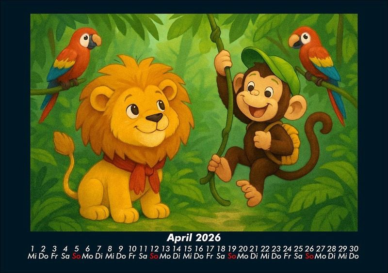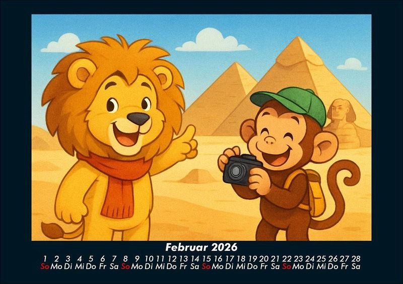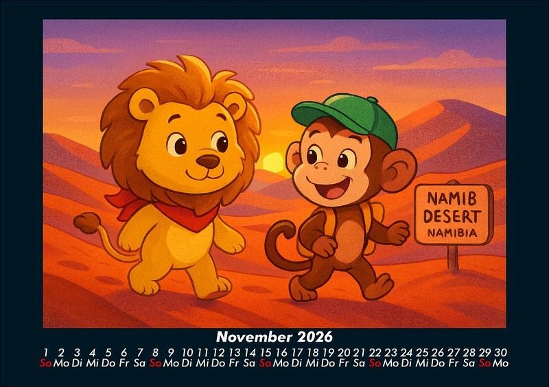 Buschi & Milo - Reise durch Afrika 2026 Motivkalender DIN A5 Vero-Kalender Kids zeigen liebevoll gestaltete Monatskalender mit bunten Bild-Motiven tierischer Freunde, die gemeinsam spannende Abenteuer erleben und die Welt entdecken. Ob in fernen Ländern, zwischen berühmten Sehenswürdigkeiten oder in magischen Landschaften - die fröhlichen Tiercharaktere begleiten Kinder Monat für Monat durch ein Jahr voller Fantasie, Freude und Freundschaft. Gedruckt werden die Kinder-Kalender aus dem Vero Verlag auf hochwertigem Kalenderbogen in Premium-Qualität und in verschiedenen Größen.