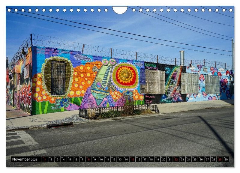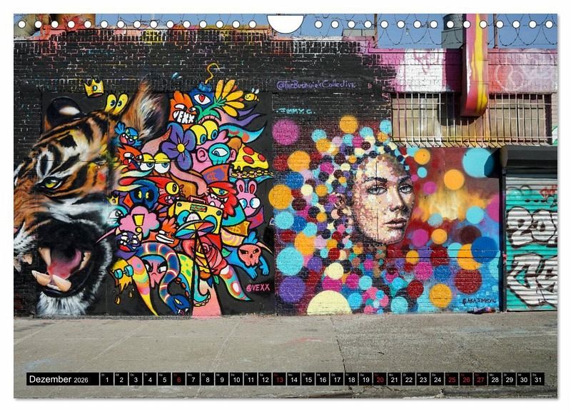 Die Graffitis der New Yorker Graffiti und Streetart Szene findet man im Stadtviertel Bushwick in Brooklyn. Unter "The Bushwick Collective" haben sich Straßenkünstler aus der ganzen Welt (legendäre Graffitikünstler und lokale Talente) zusammengetan. Ergebnis ist ein Open Air Museum, das sich ständig durch neue oder übermalte Werke verändert. Dieser Kalender zeigt einige eindrucksvolle Graffitis von Künstlern des Bushwick Collectives.
