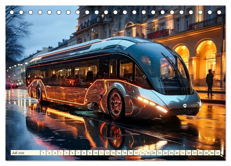 Reisen Sie in die Zukunft! Lassen Sie sich inspirieren von diesen Bussen mit ihren beeindruckenden Designs und träumen Sie von Komfort und Bequemlichkeit. Machen Sie in Ihrer Fantasie jeden Monat eine neue Fahrt in futuristische Bussen, die die Ästhetik des Verkehrs neu definieren. Der Fotokünstler Peter Roder hat dazu großartige KI-Bilder von zukunftsweisenden Bussen gestaltet.