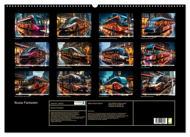 QUALITÄT - Hochwertiger Fotokalender mit 12 wunderschönen Motiven auf lichtbeständigem Bilderdruckpapier, robuste Spiralbindung mit Aufhängebügel.NACHHALTIG - deutliche Abfallreduzierung durch bedarfsgerechte Einzelstückfertigung, umweltfreundliches FSC-zertifiziertes Papier, Produktion in Deutschland, klimabewusste Logistik.PERFEKTES GESCHENK - Kalender für Freunde und Familie, für Kinder und Erwachsene, jung und alt, zu Weihnachten, Geburtstag oder zwischendurch.VIELFALT - Bildkalender in verschiedenen Formaten, z.B. DIN A5, DIN A4, DIN A3 sowie DIN A2. Ob Naturmotiv, Gemälde oder Fotos, ideal für ein persönliches Wohlfühlambiente.Busse Fantasien - Innovation und modernstes Design auf der Straße. von Autor(in): Peter Roder