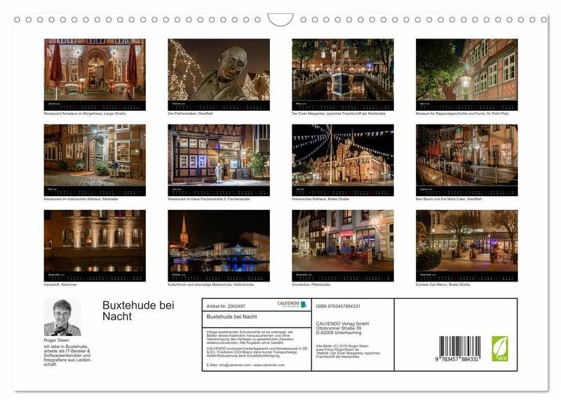 QUALITÄT - Hochwertiger Fotokalender mit 12 wunderschönen Motiven auf lichtbeständigem Bilderdruckpapier, robuste Spiralbindung mit Aufhängebügel.NACHHALTIG - deutliche Abfallreduzierung durch bedarfsgerechte Einzelstückfertigung, umweltfreundliches FSC-zertifiziertes Papier, Produktion in Deutschland, klimabewusste Logistik.PERFEKTES GESCHENK - Kalender für Freunde und Familie, für Kinder und Erwachsene, jung und alt, zu Weihnachten, Geburtstag oder zwischendurch.VIELFALT - Bildkalender in verschiedenen Formaten, z.B. DIN A5, DIN A4, DIN A3 sowie DIN A2. Ob Naturmotiv, Gemälde oder Fotos, ideal für ein persönliches Wohlfühlambiente.Alte Fachwerkhäuser, gemütliche Restaurants und ein romantischer Fleth von Autor(in): Roger Steen