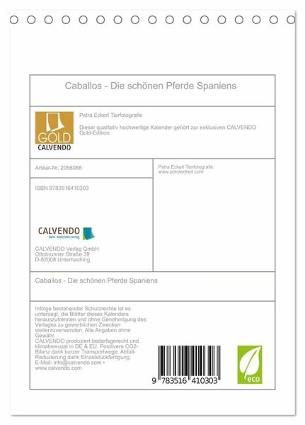 QUALITÄT - Hochwertiger Fotokalender mit 12 wunderschönen Motiven auf lichtbeständigem Bilderdruckpapier, robuste Spiralbindung.NACHHALTIG - deutliche Abfallreduzierung durch bedarfsgerechte Einzelstückfertigung, umweltfreundliches FSC-zertifiziertes Papier, Produktion in Deutschland, klimabewusste Logistik.PERFEKTES GESCHENK - Kalender für Freunde und Familie, für Kinder und Erwachsene, jung und alt, zu Weihnachten, Geburtstag oder zwischendurch.VIELFALT - Bildkalender in verschiedenen Formaten, z.B. DIN A5, DIN A4, DIN A3 sowie DIN A2. Ob Naturmotiv, Gemälde oder Fotos, ideal für ein persönliches Wohlfühlambiente.Begeben Sie sich auf eine kleine Reise und entdecken Sie die faszinierenden Pferde in Andalusien ... von Autor(in): Petra Eckerl