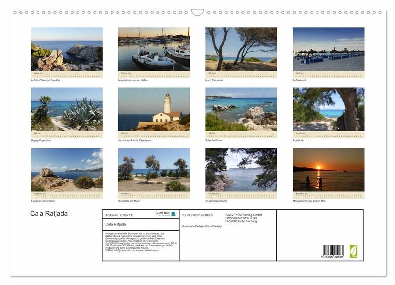 QUALITÄT - Hochwertiger Fotokalender mit 12 wunderschönen Motiven auf lichtbeständigem Bilderdruckpapier, robuste Spiralbindung mit Aufhängebügel.NACHHALTIG - deutliche Abfallreduzierung durch bedarfsgerechte Einzelstückfertigung, umweltfreundliches FSC-zertifiziertes Papier, Produktion in Deutschland, klimabewusste Logistik.PERFEKTES GESCHENK - Kalender für Freunde und Familie, für Kinder und Erwachsene, jung und alt, zu Weihnachten, Geburtstag oder zwischendurch.VIELFALT - Bildkalender in verschiedenen Formaten, z.B. DIN A5, DIN A4, DIN A3 sowie DIN A2. Ob Naturmotiv, Gemälde oder Fotos, ideal für ein persönliches Wohlfühlambiente.Bei Cala Ratjada findet man schöne Buchten und genießt den Charme der ursprünglichen Insel.. von Autor(in): Rosemarie Prediger